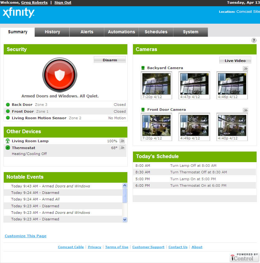 - Detailed Home Status: View notable events and check the security status of every sensor-enabled window and door; plus, arm and disarm your system.