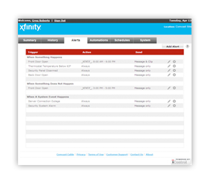 With XFINITY Home Security, it’s easy to know what’s going on at home, no matter how far away you are. By setting custom text and e-mail alerts through the web portal, you can be instantly notified during important — or unexpected — events.